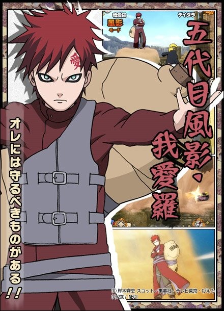 1. Sobaku-No-Gaara 2. M/16 3. внизу 4. Гаара был злым,холодным, эгоистичным, после встречи с Наруто он подобрел . 5.